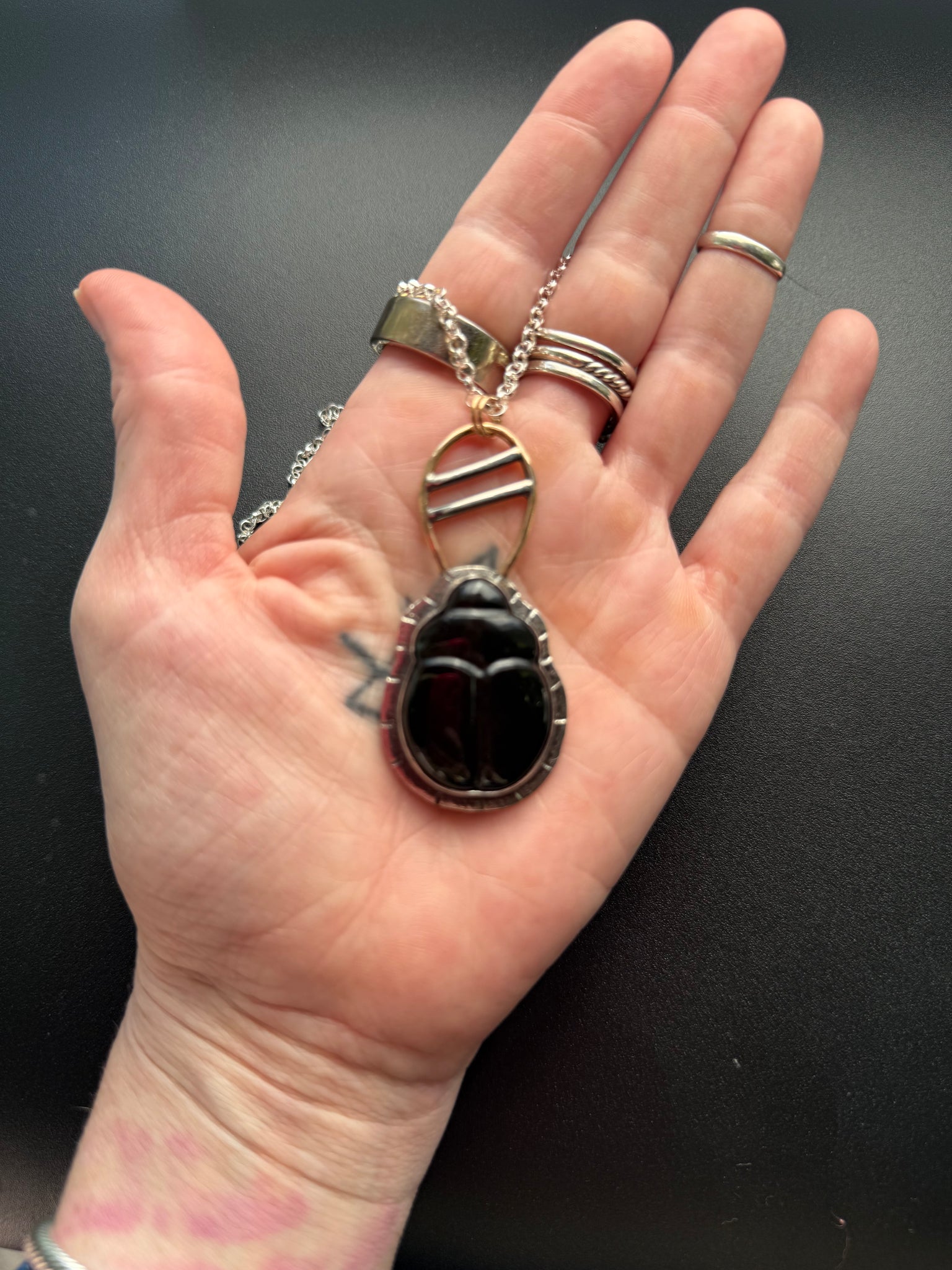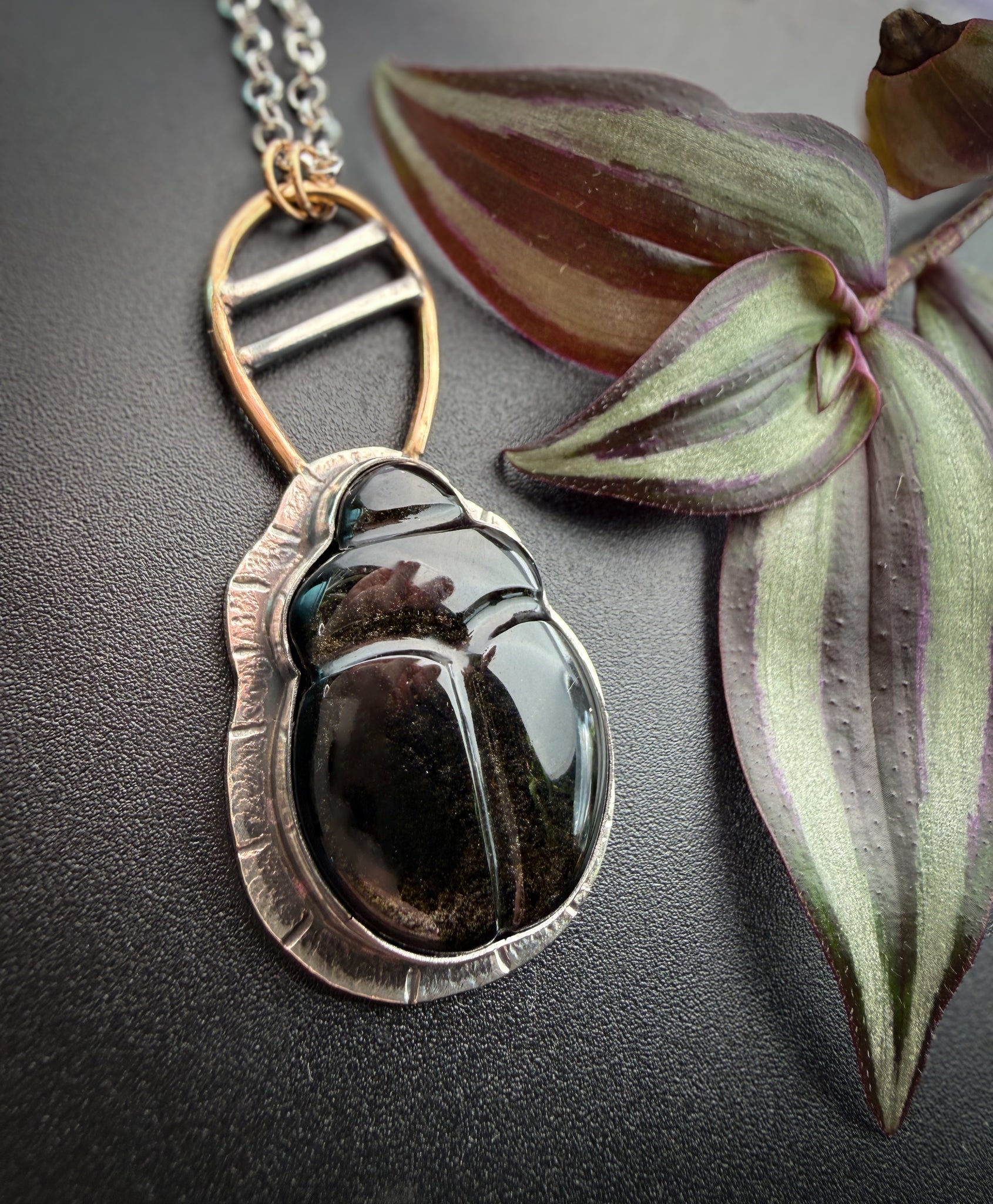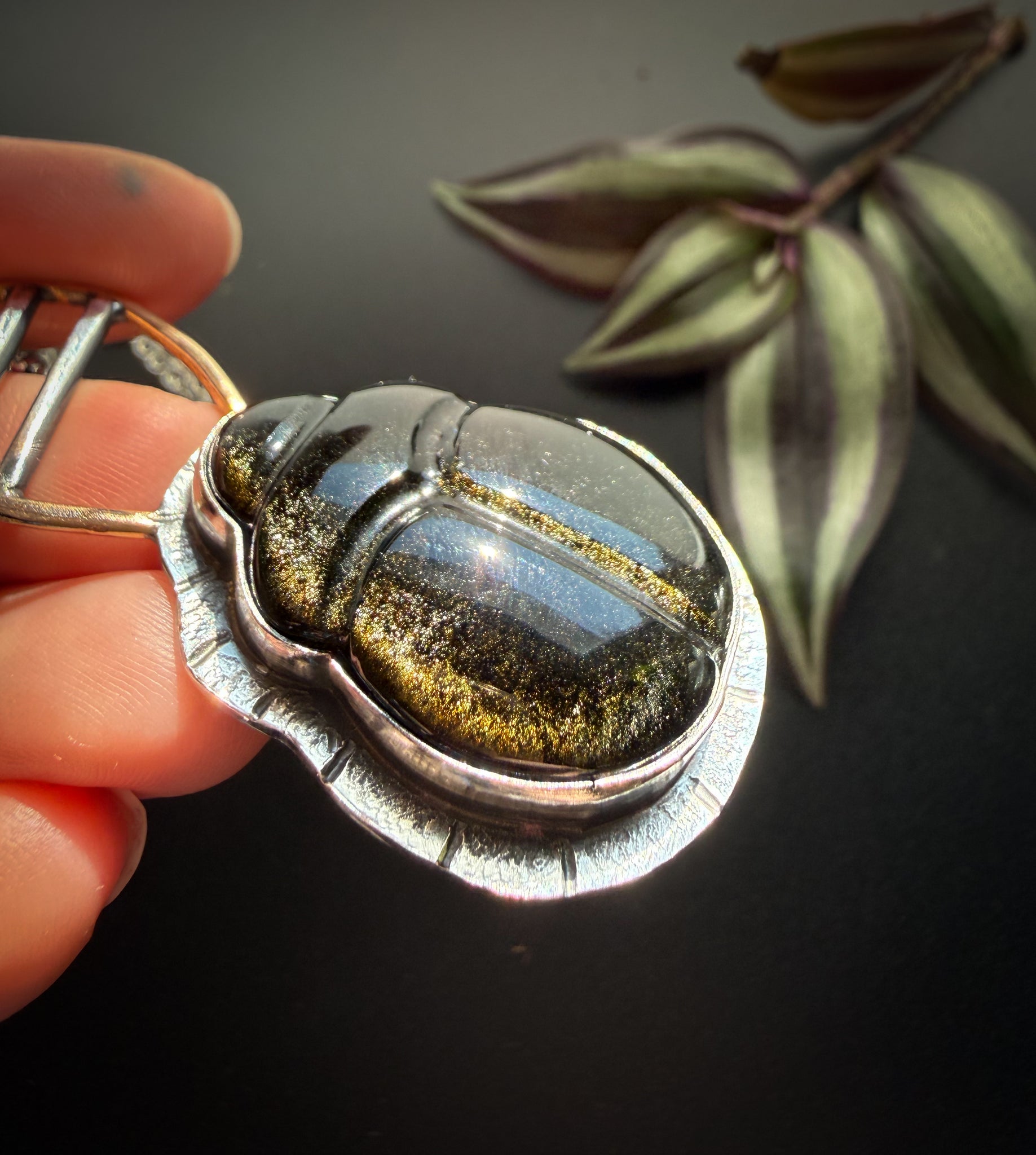 Time After Time- Golden sheen Obsidian, in a hand-fabricated setting of Sterling and Argentium silver, and 14kt gf.